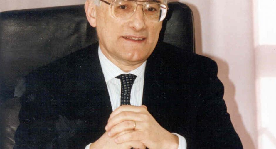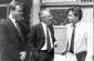 Amb. Luchino Cortese (centre), Director of the Office for Free Elections (later renamed the Office for Democratic Institutions and Human Rights, ODIHR), in front of the first office in 1991. (OSCE)