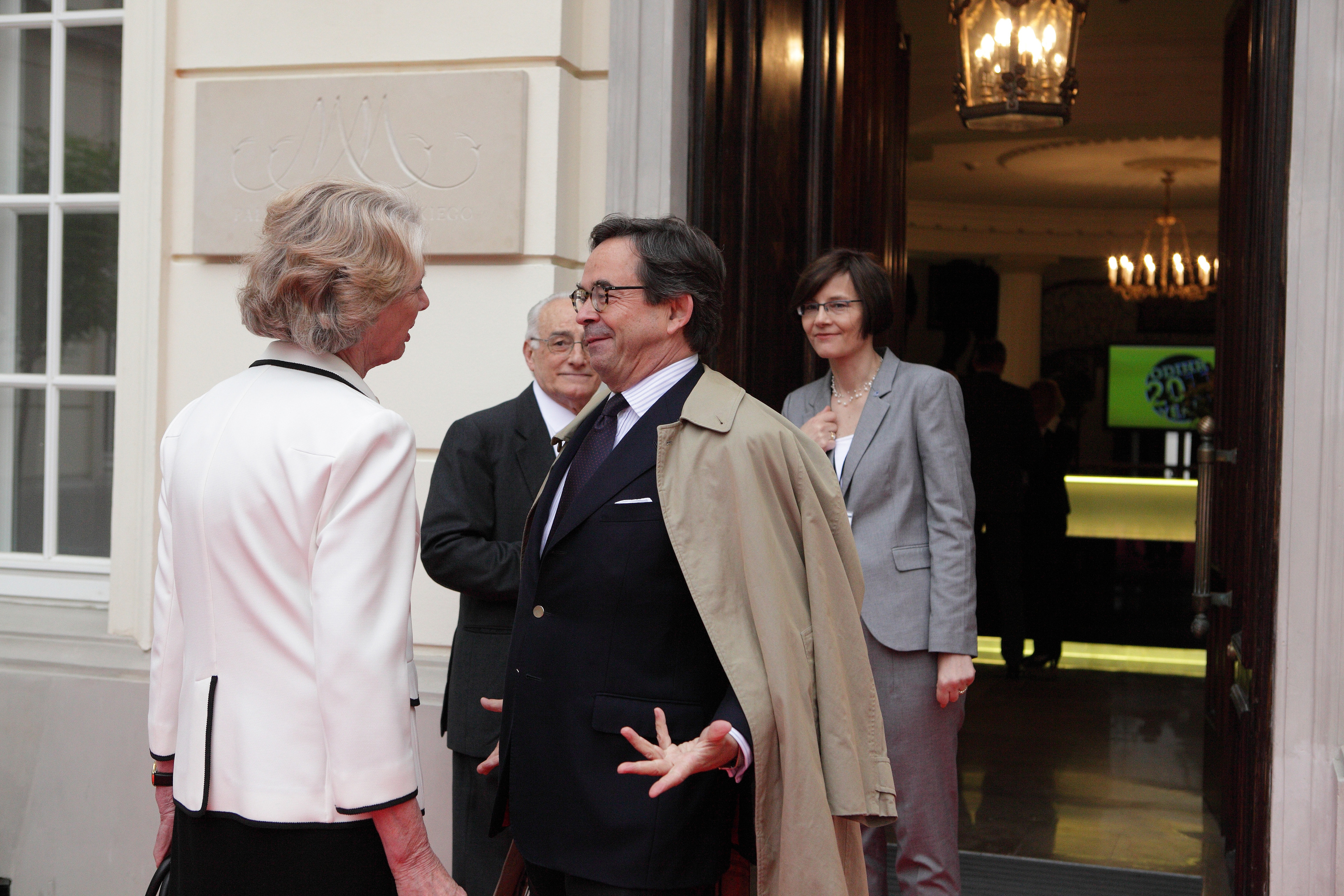 Former ODIHR Directors Audrey Glover (l) and Christian Strohal catch up prior to a ceremony to mark ODIHR's 20th anniversary in Warsaw on 17 May.