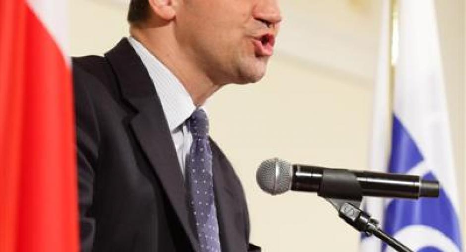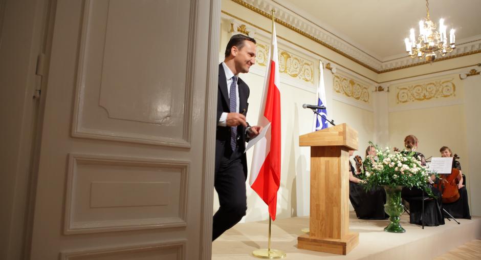 Polish Foreign Minister Radek Sikorski leaves the podium after speaking at a ceremony in Warsaw on 17 May to mark the 20th anniversary of the opening of the OSCE's Office for Democratic Institutions and Human Rights. (OSCE/Piotr Markowski)