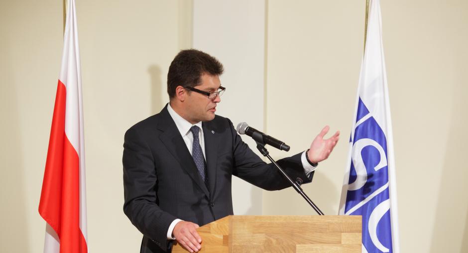 Evaldas Ignatavicius, Deputy Minister of Foreign Affairs of Lithuania and representative of the OSCE Chairperson-in-Office, at an event in Warsaw on 17 to mark ODIHR's 20th anniversary. (OSCE/Piotr Markowski)
