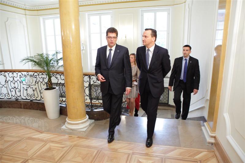 ODIHR Director Ambassador Janez Lenarčič (l) speaking with Polish Foreign Minister Radek Sikorski at an event marking ODIHR's 20th anniversary in Warsaw on 17 May.