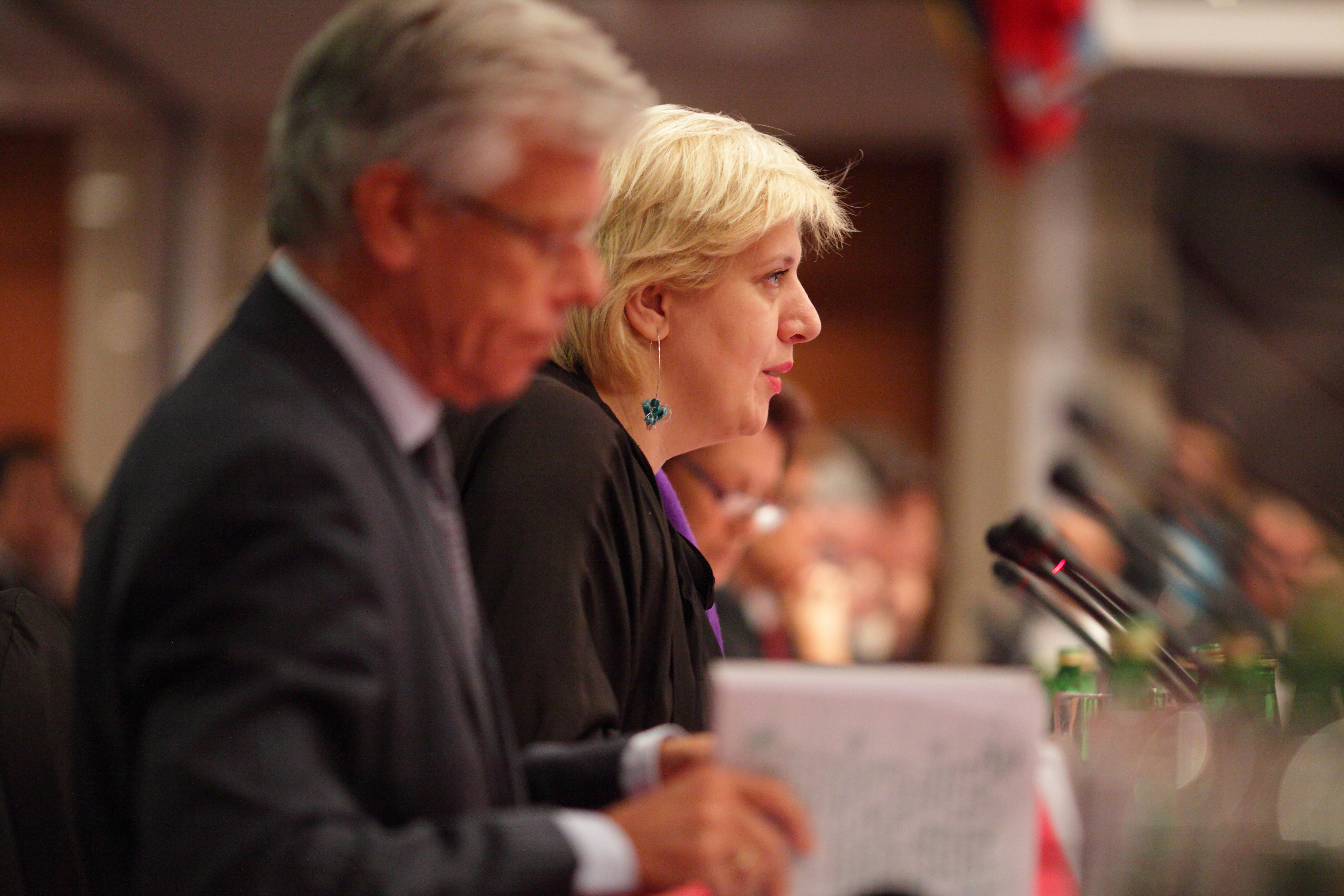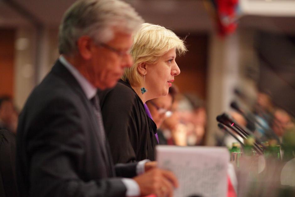 The OSCE Representative on Freedom of the Media, Dunja Mijatović, addresses participants at the opening plenary session of the Human Dimension Implementation Meeting in Warsaw on 26 September 2011.