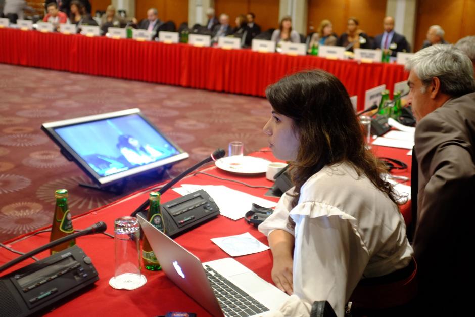 Katalin Barsony, Executive Director of Romedia Foundation, speaks at a side event on the role of the media in countering negative stereotypes against Roma during the OSCE's annual human rights conference, Warsaw, 5 October 2011.