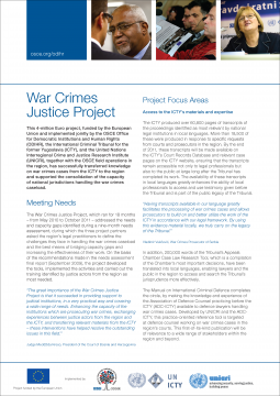 This 4-million Euro project, funded by the EU and implemented jointly by ODIHR, the International Criminal Tribunal for the former Yugoslavia (ICTY), and the UN’s Interregional Crime and Justice Research Institute (UNICRI), together with the OSCE field operations, successfully transferred knowledge on war crimes cases from the ICTY to the region and supported the consolidation of the capacity of national jurisdictions handling the war crimes caseload.