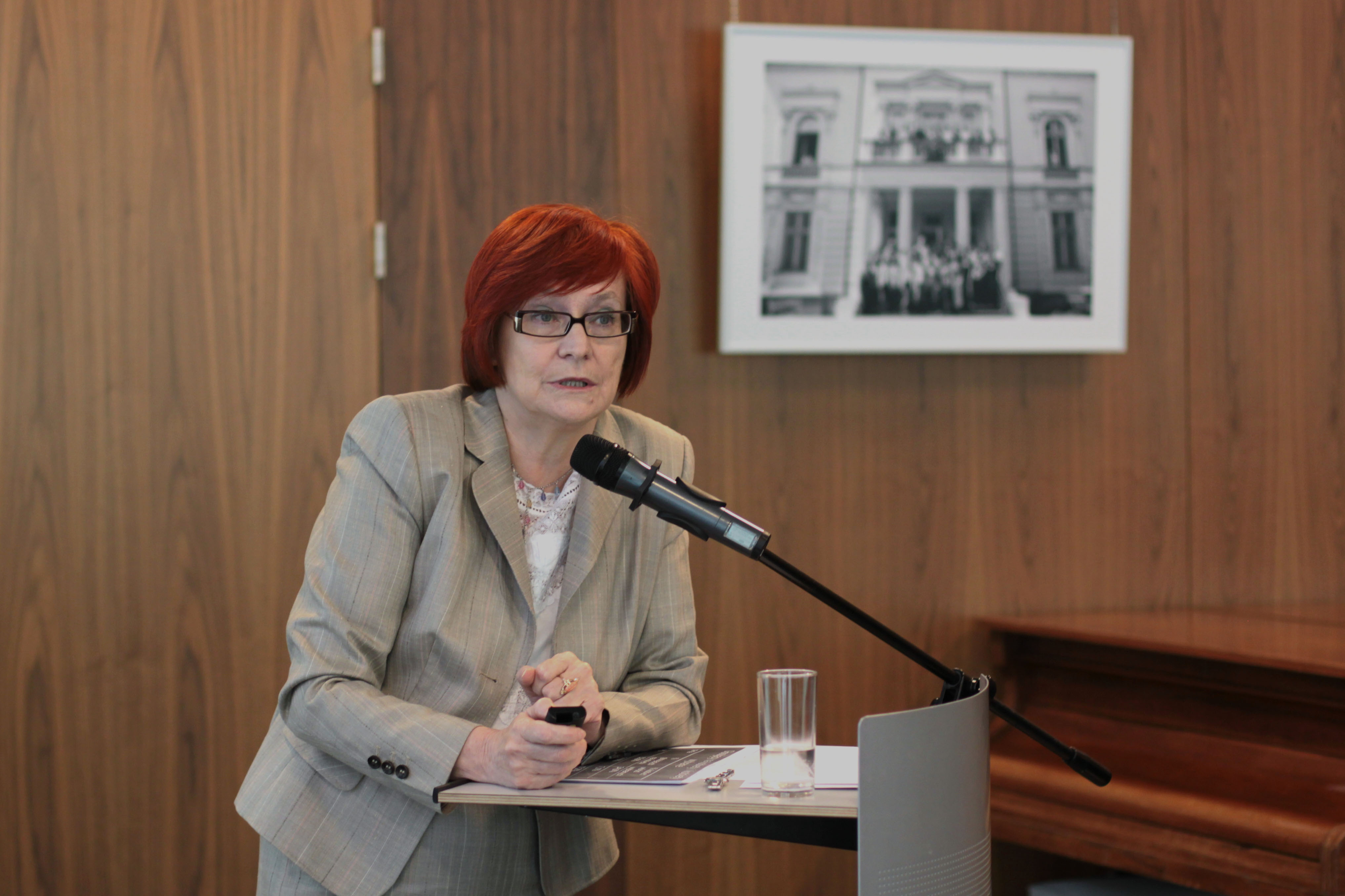 Professor Małgorzata Fuszara, of the Polish Institute of Public Affairs, addresses participants of an ODIHR-supported conference on measures to raise women’s political participation in Poland. Warsaw, 17 April 2012.