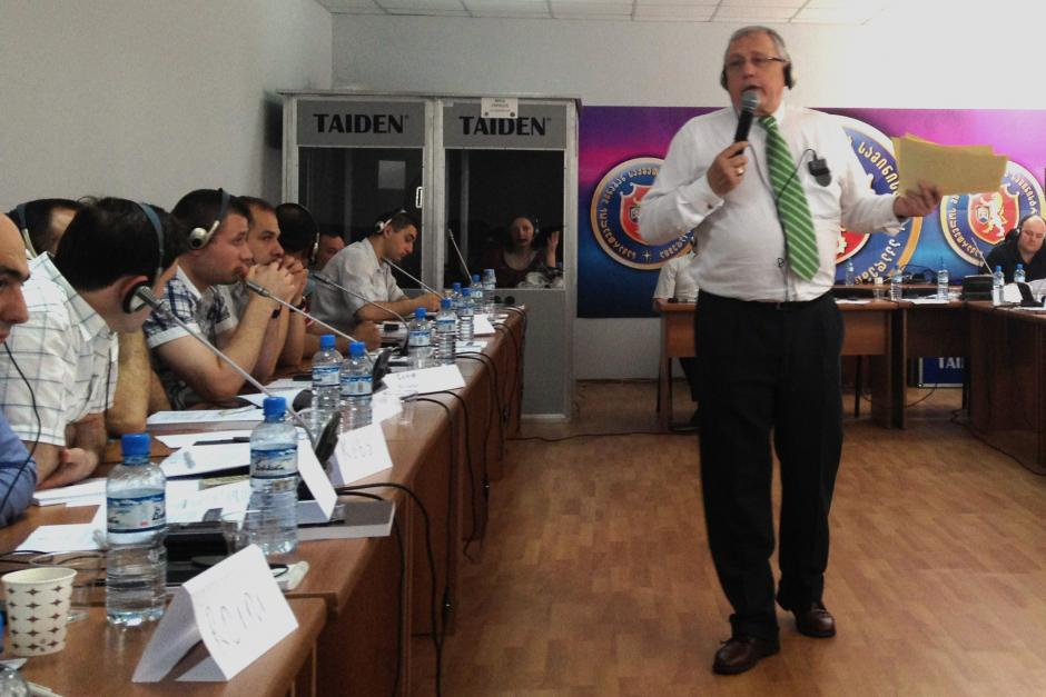 ODIHR consultant Friedrich Schwindt delivers the training course for Georgian law enforcement officers on the protection of human rights while countering terrorism, Tbilisi, 16 May 2012.