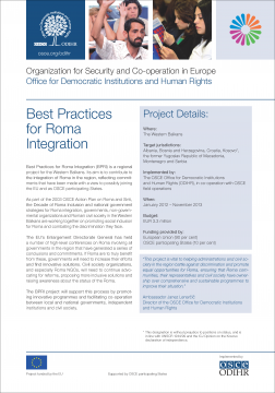 A factsheet about Best Practices for Roma Integration (BPRI), a regional project for the Western Balkans. Its aim is to contribute to the integration of Roma in the region, reflecting commitments that have been made with a view to possibly joining the EU and as OSCE participating States.