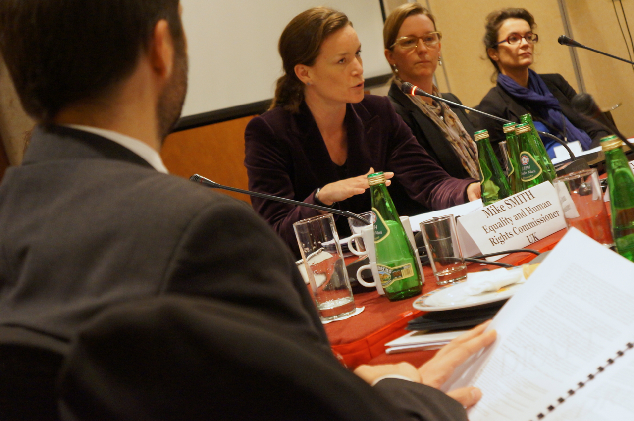 (L-r) ODIHR Hate Crime Officers Joanna Perry and Carolyn Bys, and Floriane Hohenberg, the Head of ODIHR’s Tolerance and Non-Discrimination Department, present the highlights from ODIHR’s annual hate crime report for 2011, which is due to be published in November, at the Human Dimension Implementation Meeting, Warsaw, 3 October 2012.