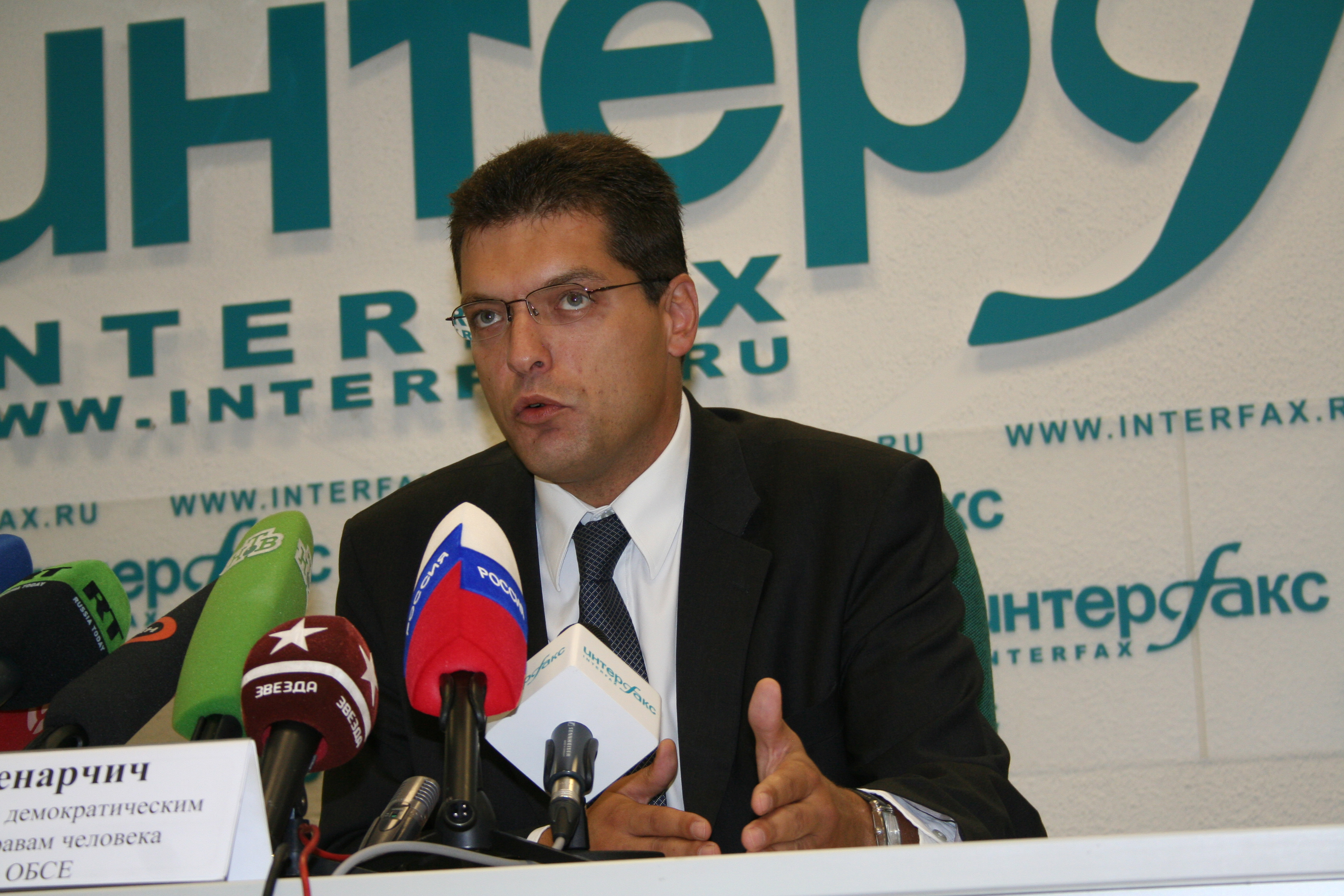 ODIHR Director Janez Lenarcic talks to the press during his visit to Moscow, 8-9 September 2008.