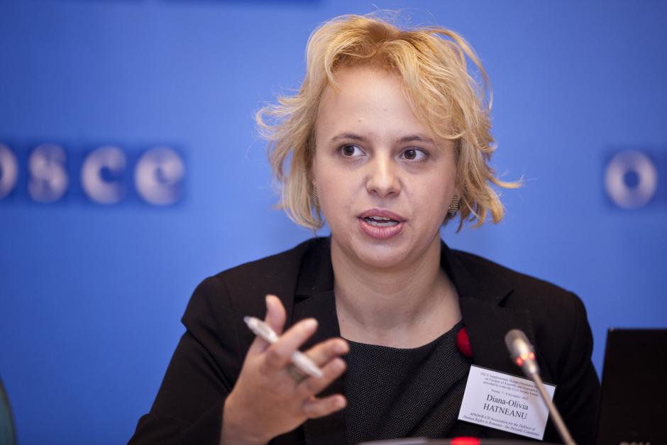 Diana-Olivia Hatneanu of Romania, Executive Director of the Association for the Defence of Human Rights–Helsinki Committee, discusses the role of new technologies in relation to the freedom of assembly and association at a civil society forum in Vienna, 7 November 2012. The forum was organized by the OSCE's Office for Democratic Institutions and Human Rights.