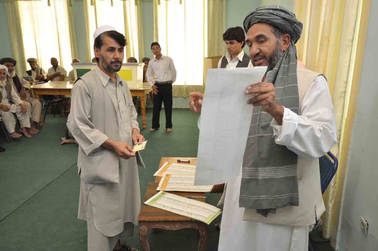 An Afghan man in Jowzjan province, Afghanistan, participates in a mock election exercise held in advance of the ODIHR-supported 20 August 2009 Presidential and Provincial Council elections, 28 July 2009.