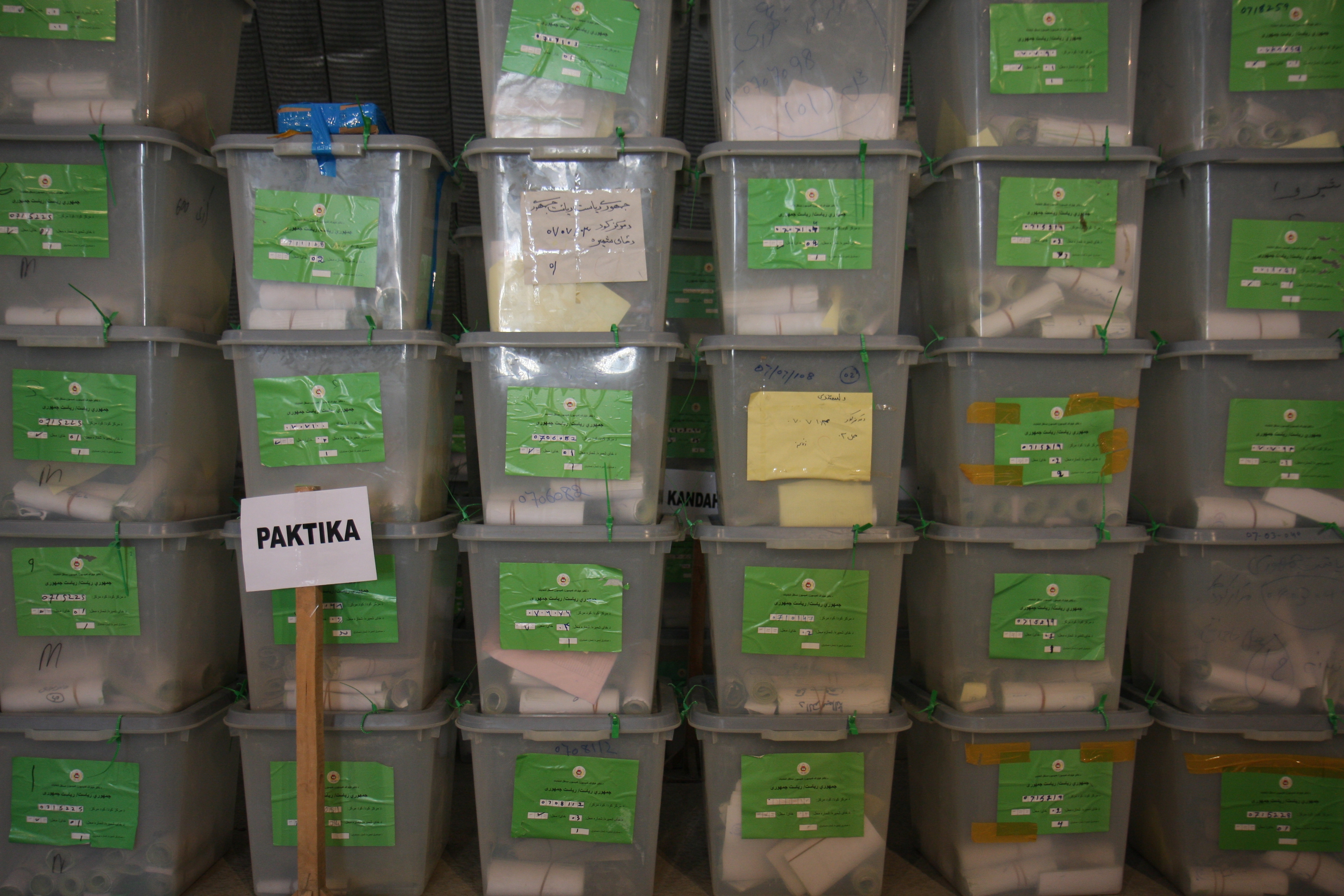 Ballot boxes falling under the 8 September Order of the Election Complaints Commission in storage waiting to be audited, Kabul, 8 October 2009.