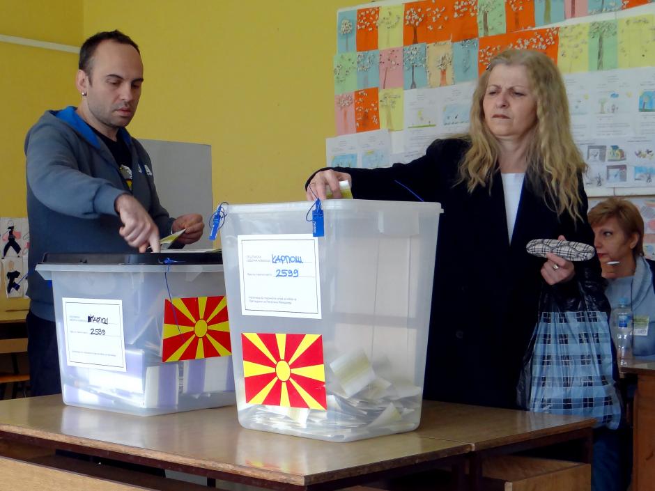Voters in Skopje cast their ballots during the early parliamentary and second round presidential elections in the former Yugoslav Republic of Macedonia, 27 April 2014.
