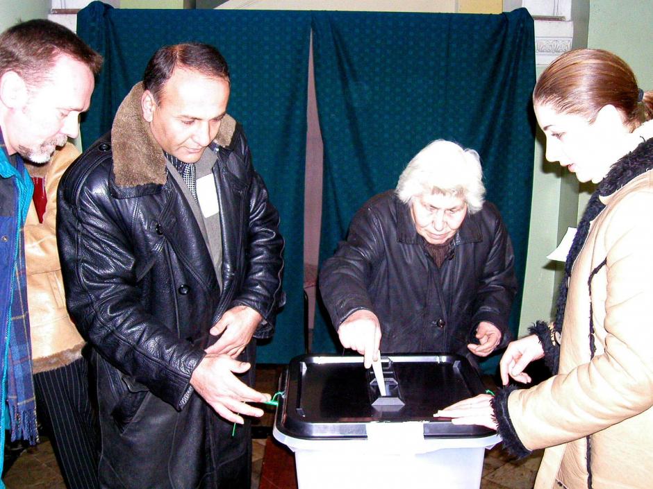 ODIHR observers inspecting a ballot box