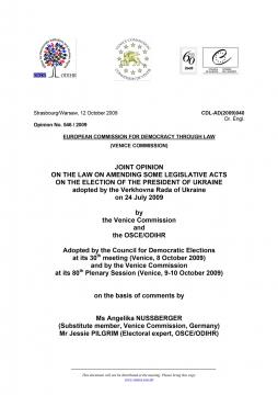 Joint Opinion on the Law on Amending Some Legislative Acts on the Election of the President of Ukraine