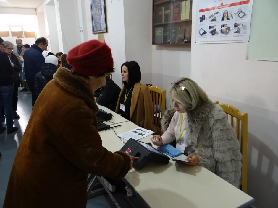 A voter in Yerevan having her identity confirmed by her fingerprint before receiving her ballot for the early parliamentary elections in Armenia, 9 December 2018.