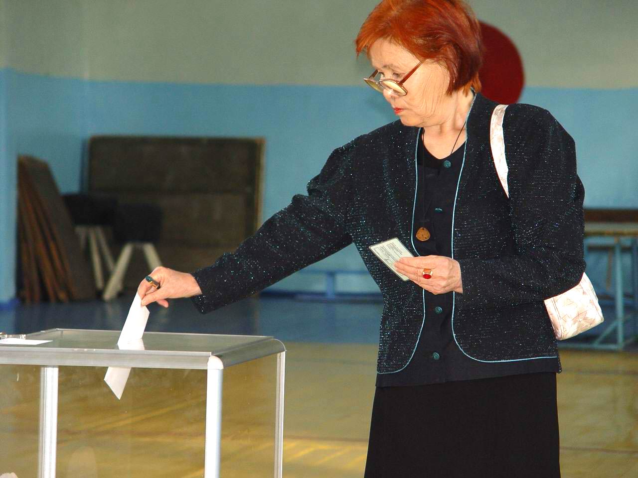 A voter in the town of Malinovka casts her ballot during the 19 September parliamentary elections in Kazakhstan.