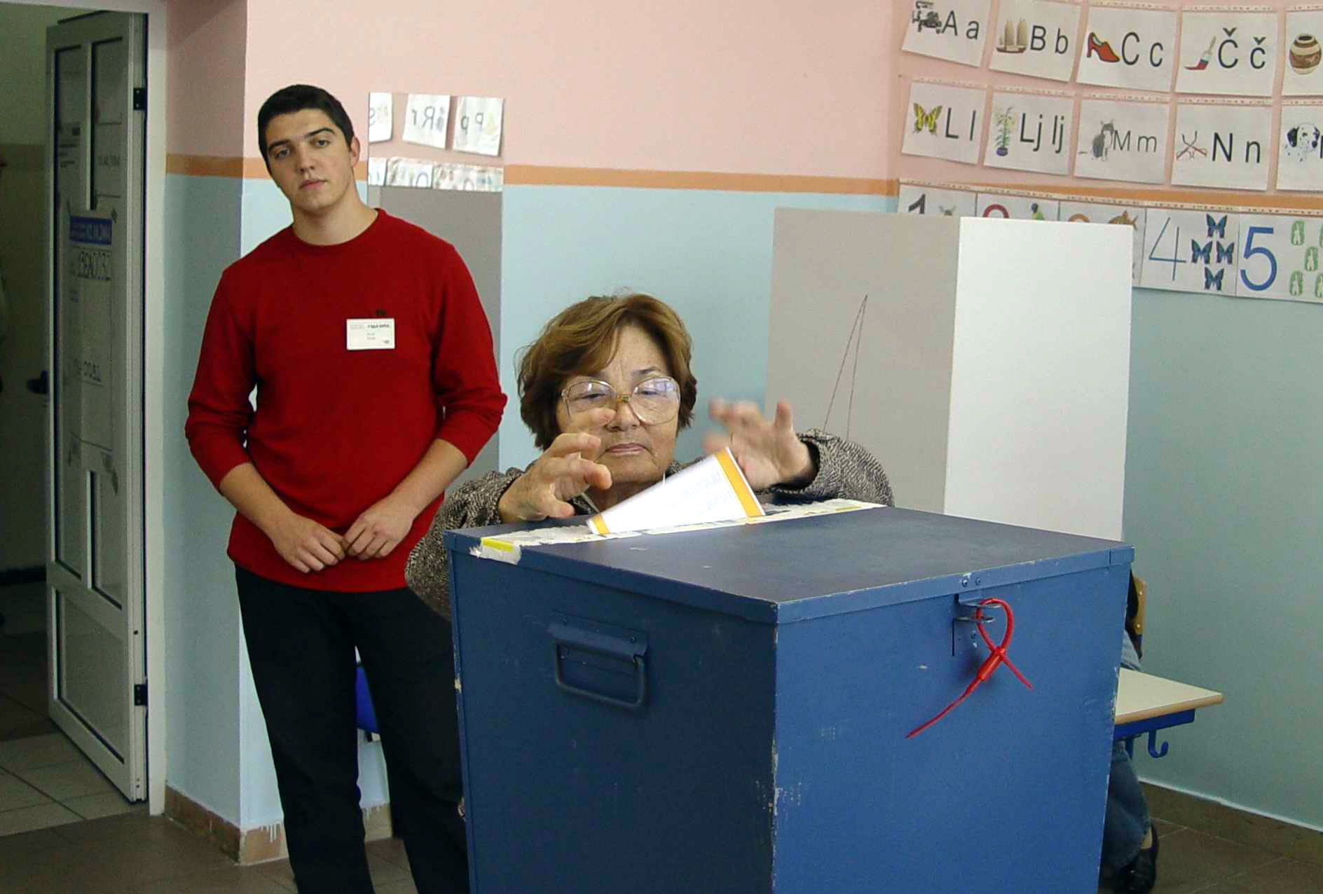 A voter in Sarajevo casts her ballot in the municipal election in Bosnia and Herzegovina on 2 October 2004.