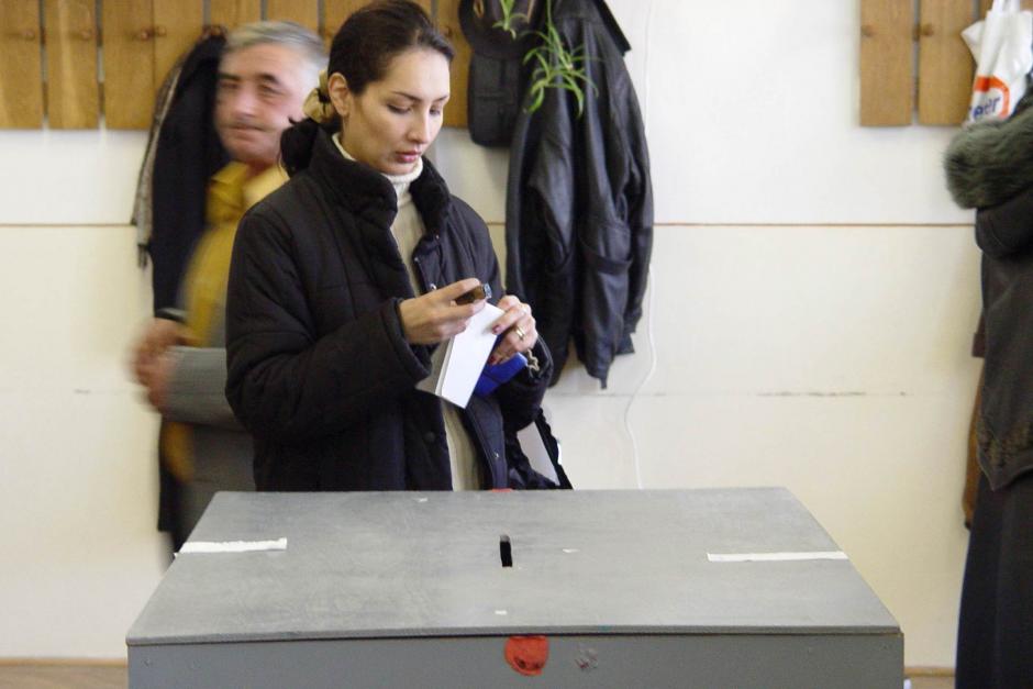 A young voter in the town of Alexandria, south of Bucharest, casts her ballot in the second round of Romania's presidential election on 12 December 2004.