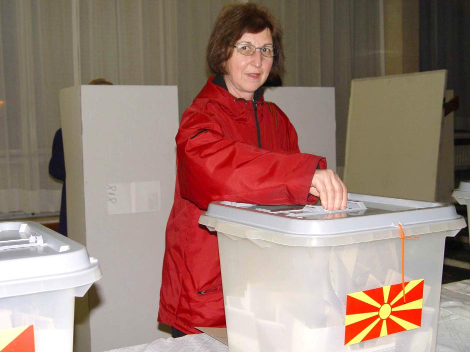 A voter casts her ballot at a polling station in Skopje during municipal elections in the former Yugoslav Republic of Macedonia, 13 March 2005.