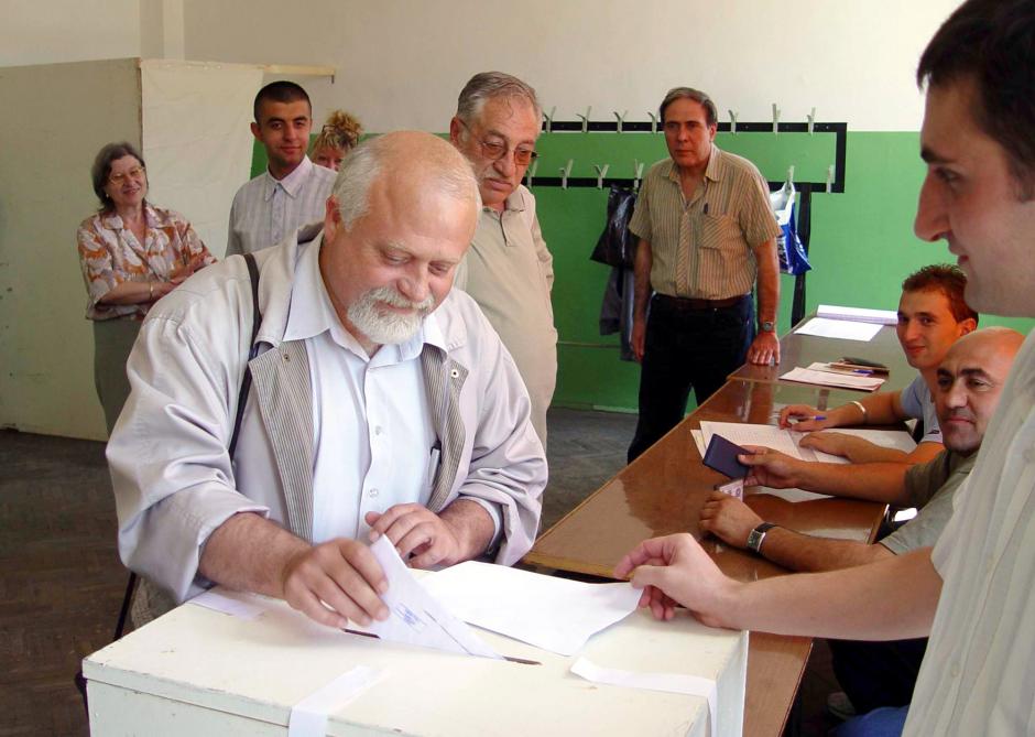 Voters in Sofia, Bulgaria's capital, cast their ballots in parliamentary elections on 25 June 2005.