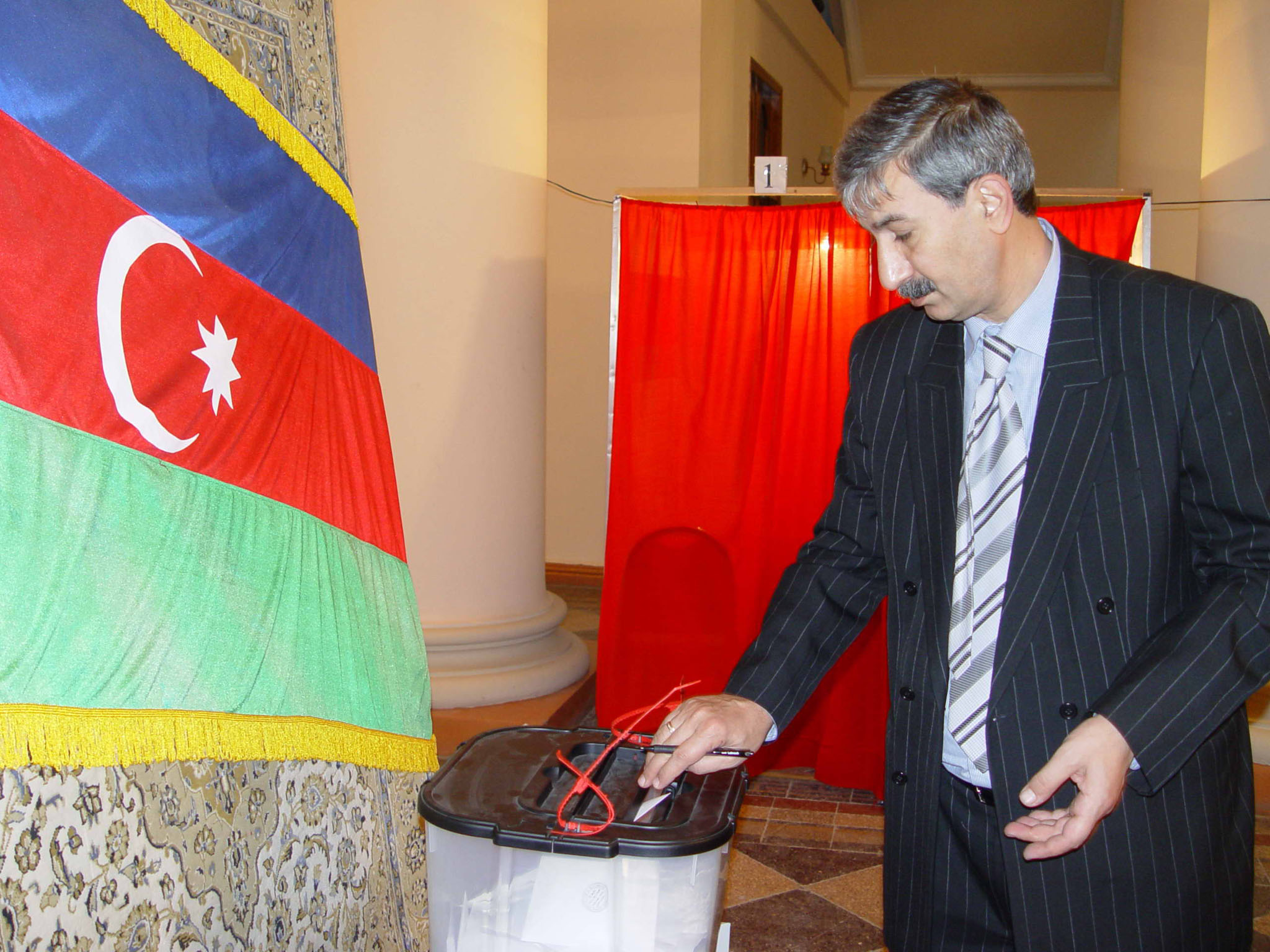 A man casts his ballot in Baku, during the 6 November 2005 parliamentary elections in Azerbaijan.