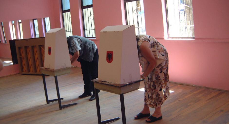 (Jens Eschenbaecher/OSCE)Albanian citizens marking ballots during the parliamentary
