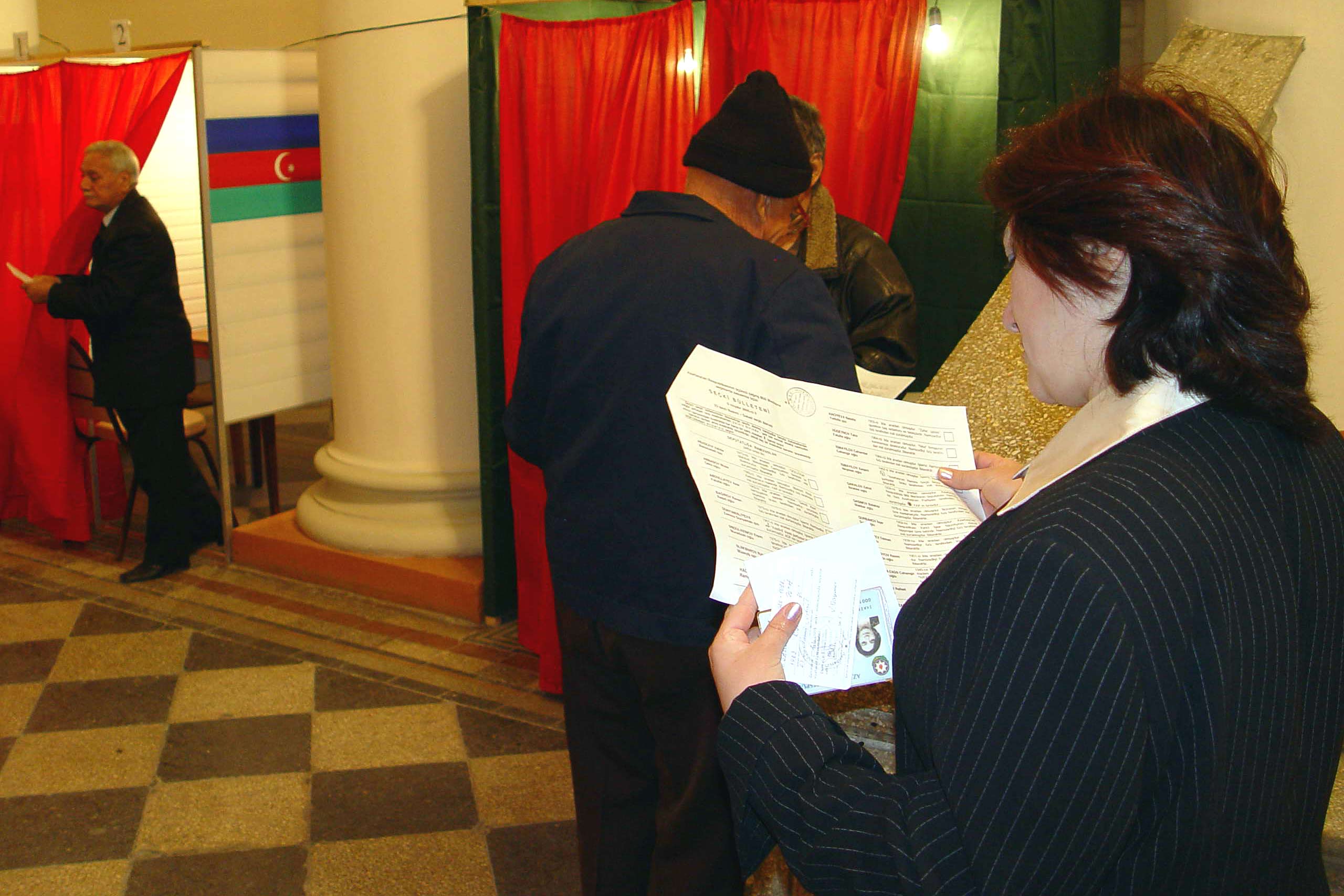 Voters in Baku wait to cast their ballots during the 6 November 2005 parliamentary elections in Azerbaijan.