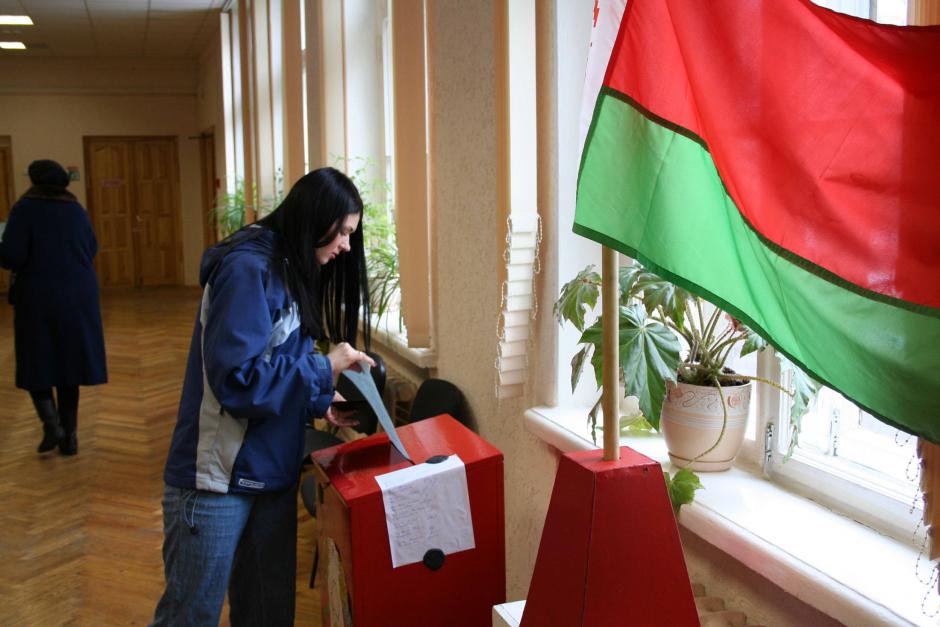 A young lady casts her ballot at a polling station in Minsk during the 19 March 2006 presidential election in Belarus.