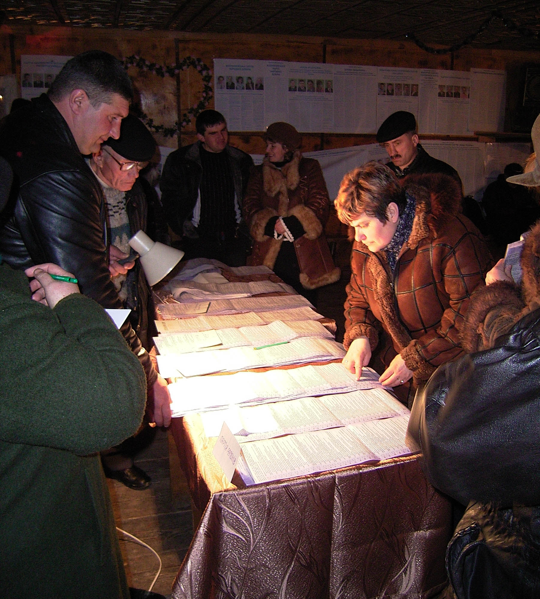 Officials count ballots at a polling station in Lviv region, in western Ukraine, during the March 2006 parliamentary elections.