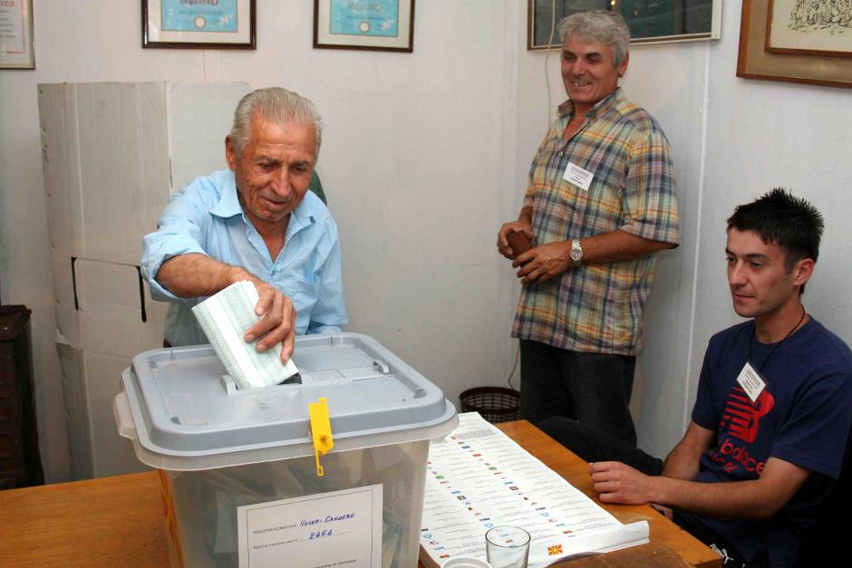 A voter casts his ballot during parliamentary elections in the former Yugoslav Republic of Macedonia, Skopje, 5 July 2006.