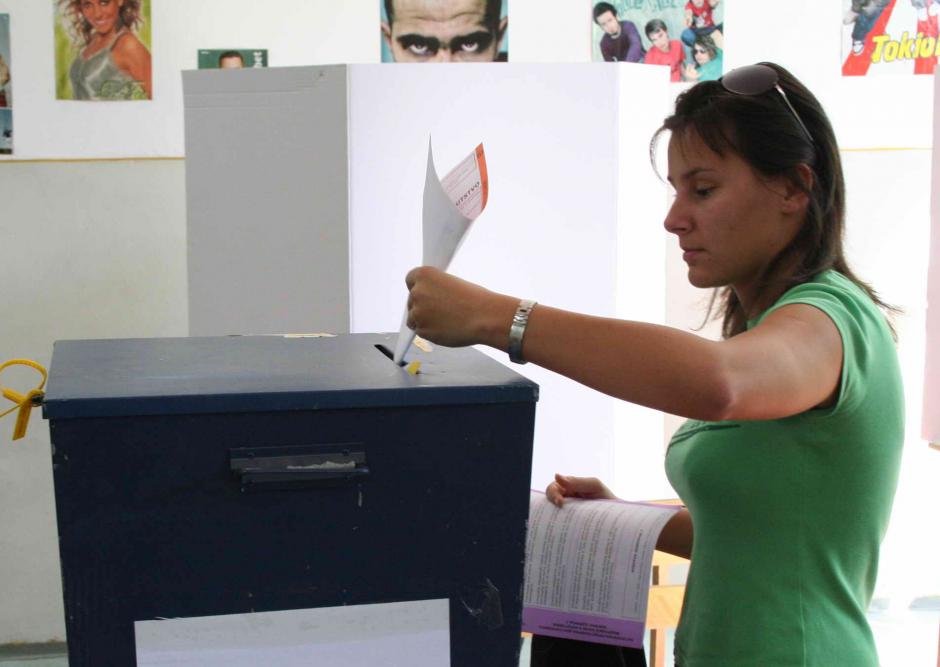 A woman casts her ballot at a polling station in Sarajevo during the 1 October 2006 general elections in Bosnia and Herzegovina.