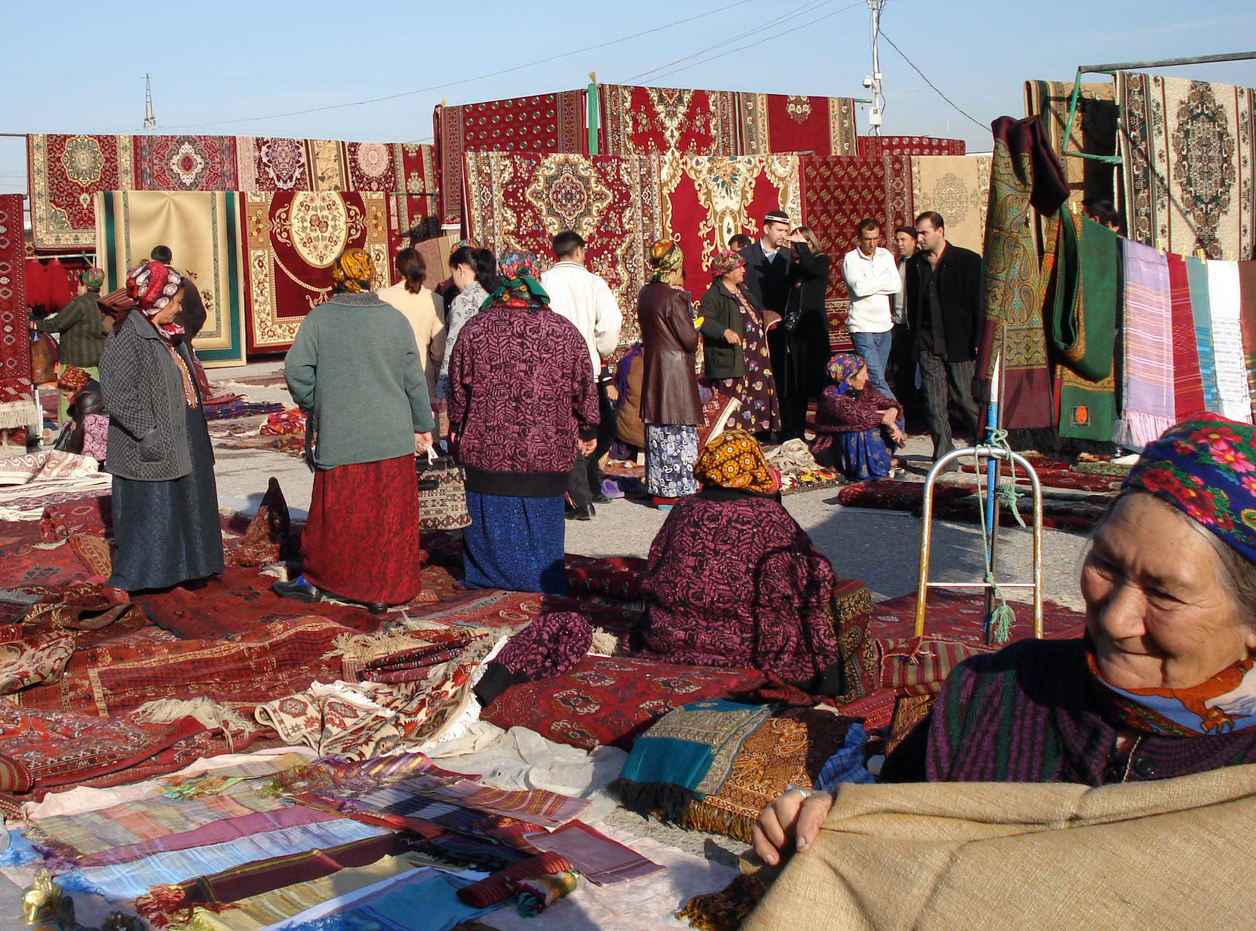 An outdoor carpet market in Ashgabat, February 2007.