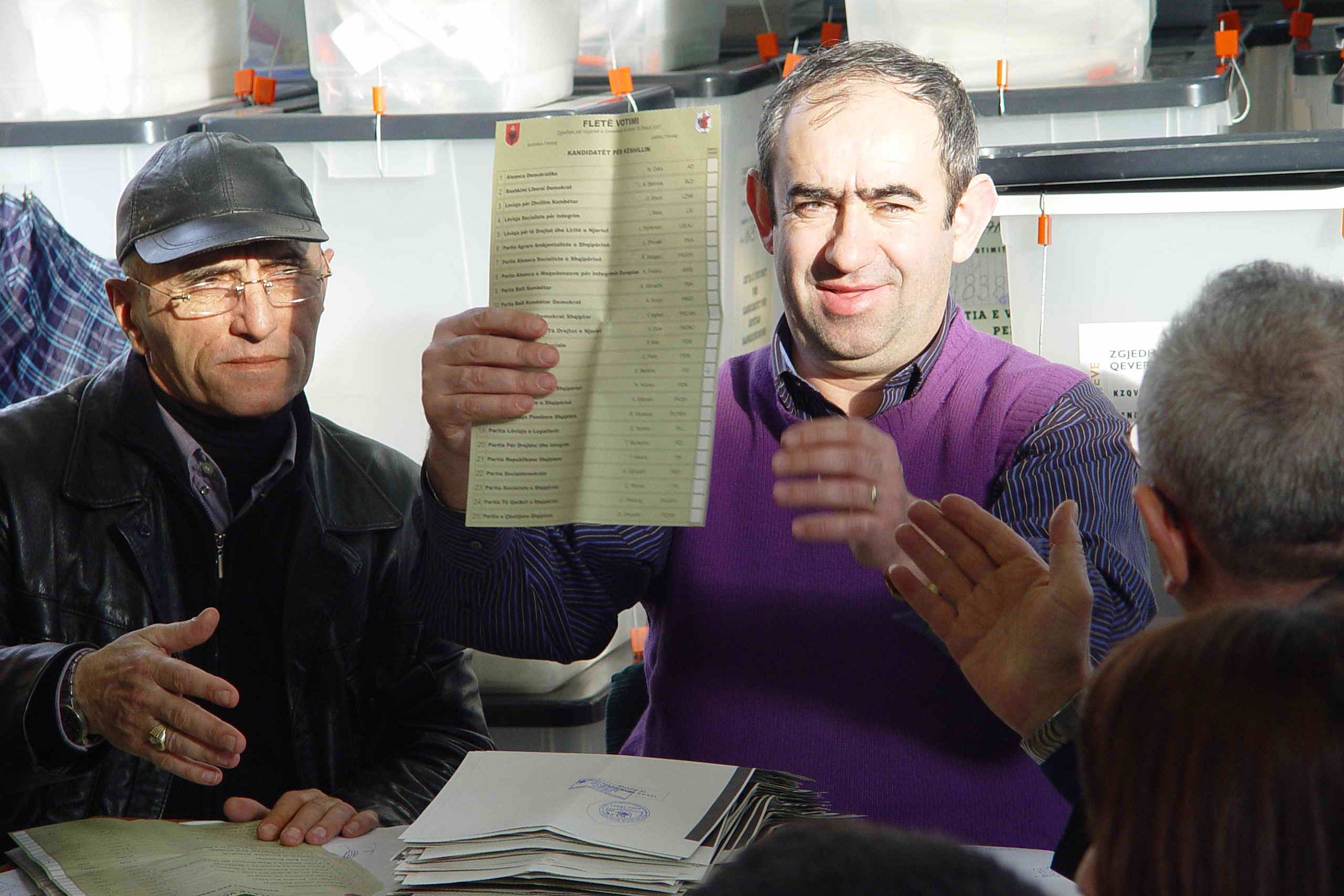 Ballots are counted for the 18 February local elections in Albania at a counting centre in Tirana, 20 February 2007.