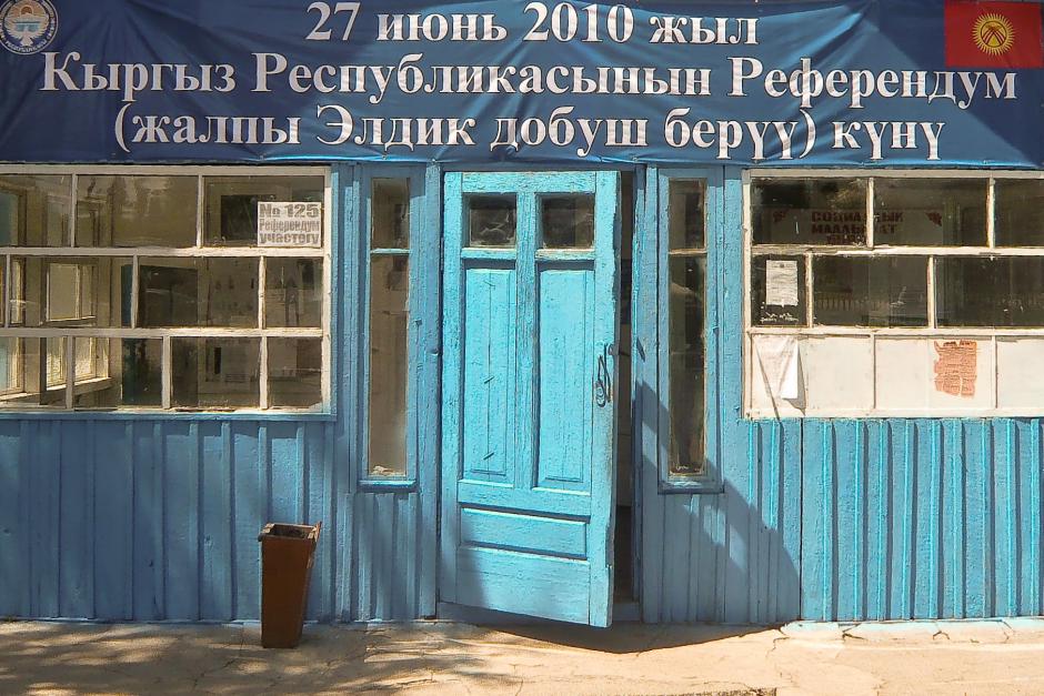 A polling station near Karakol in eastern Kyrgyzstan just a few days before a constitutional referendum scheduled for 27 June 2010.