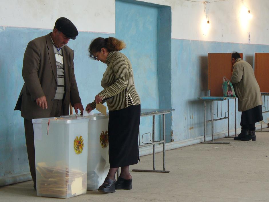 Voters cast their ballots in a mountain village near Martuni, Lake Sevan, during parliamentary elections in Armenia, 12 May 2007.