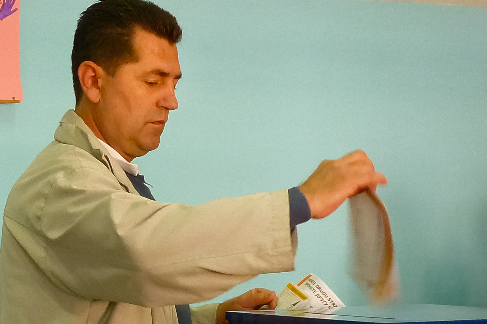 A voter casts his vote at a polling station in the city of Travnik during general elections in Bosnia and Herzegovina, 3 October 2010.
