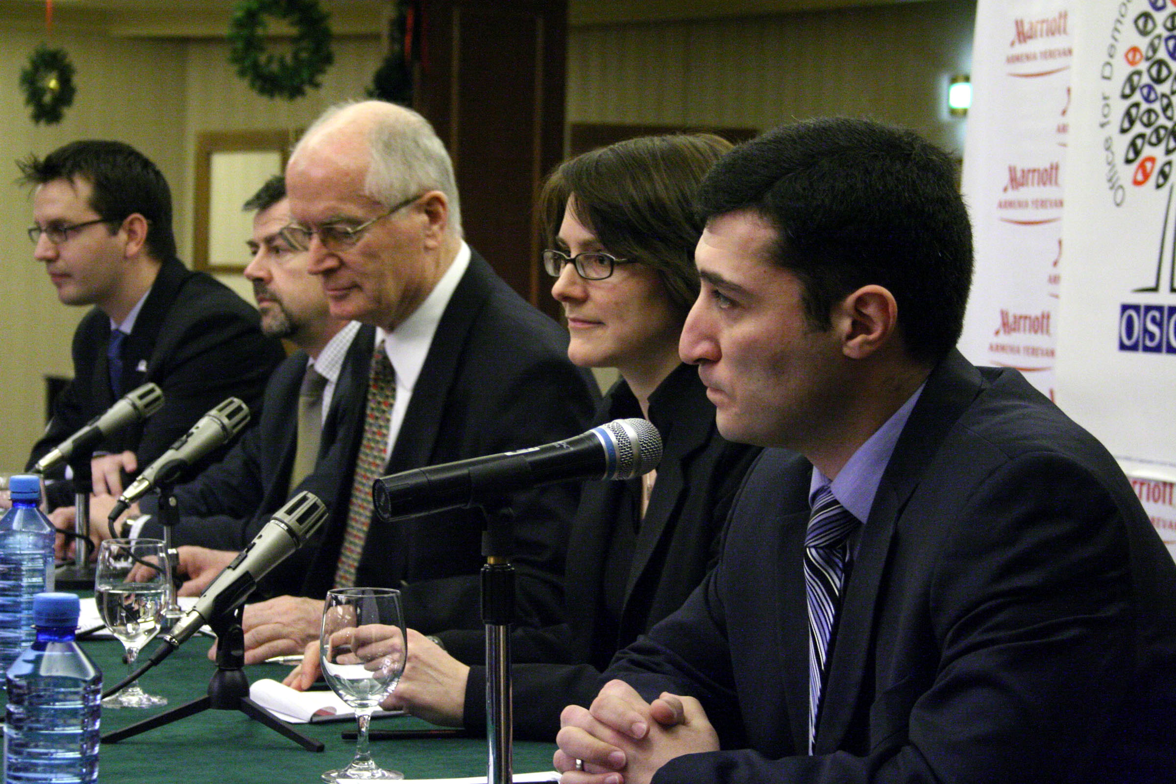 Members of the OSCE/ODIHR election observation mission in Armenia hold a press conference in Yerevan ahead of the 19 February 2008 presidential election.