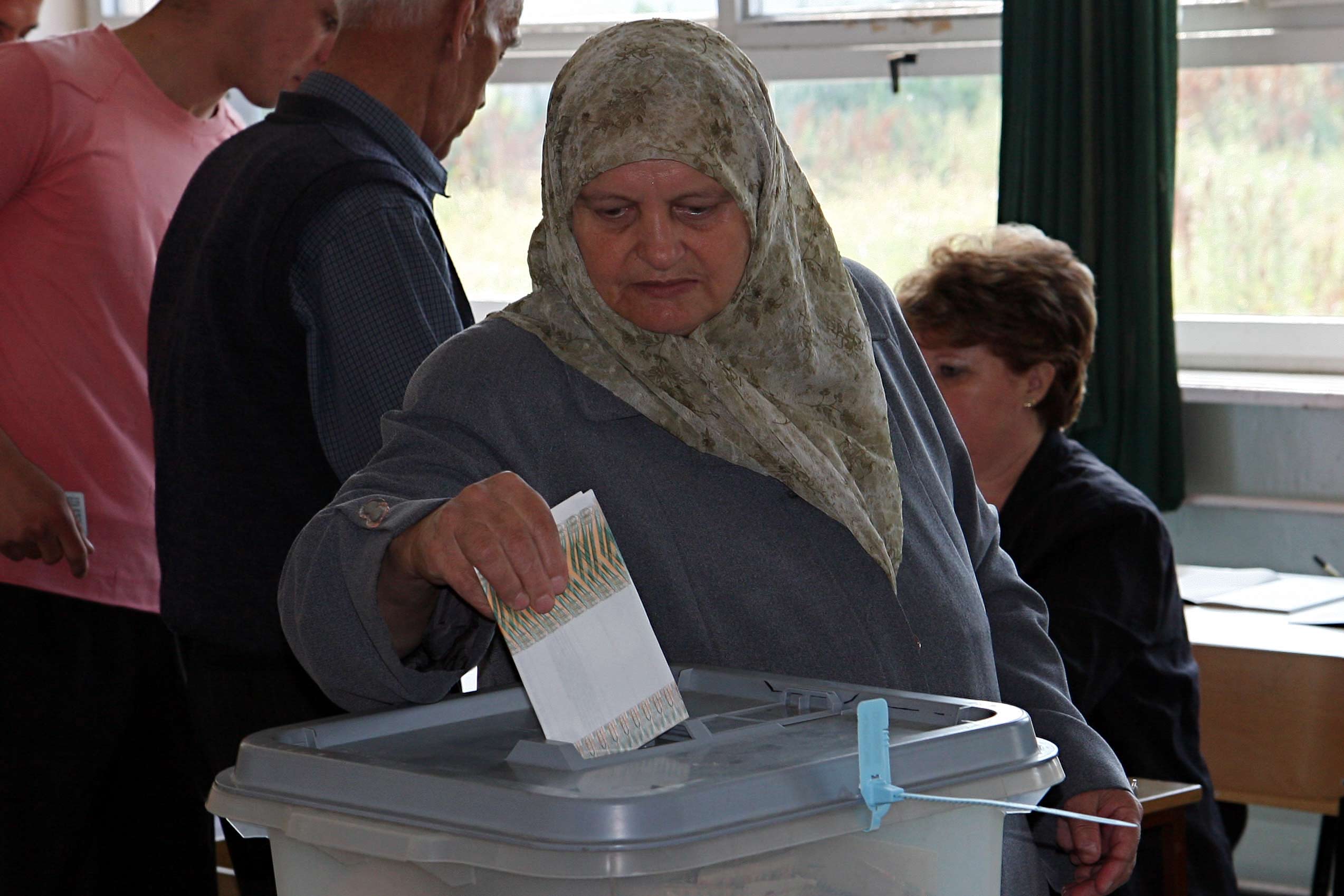 A woman votes in one of the re-runs of the 1 June 2008 parliamentary elections in the former Yugoslav Republic of Macedonia, held on 15 June.