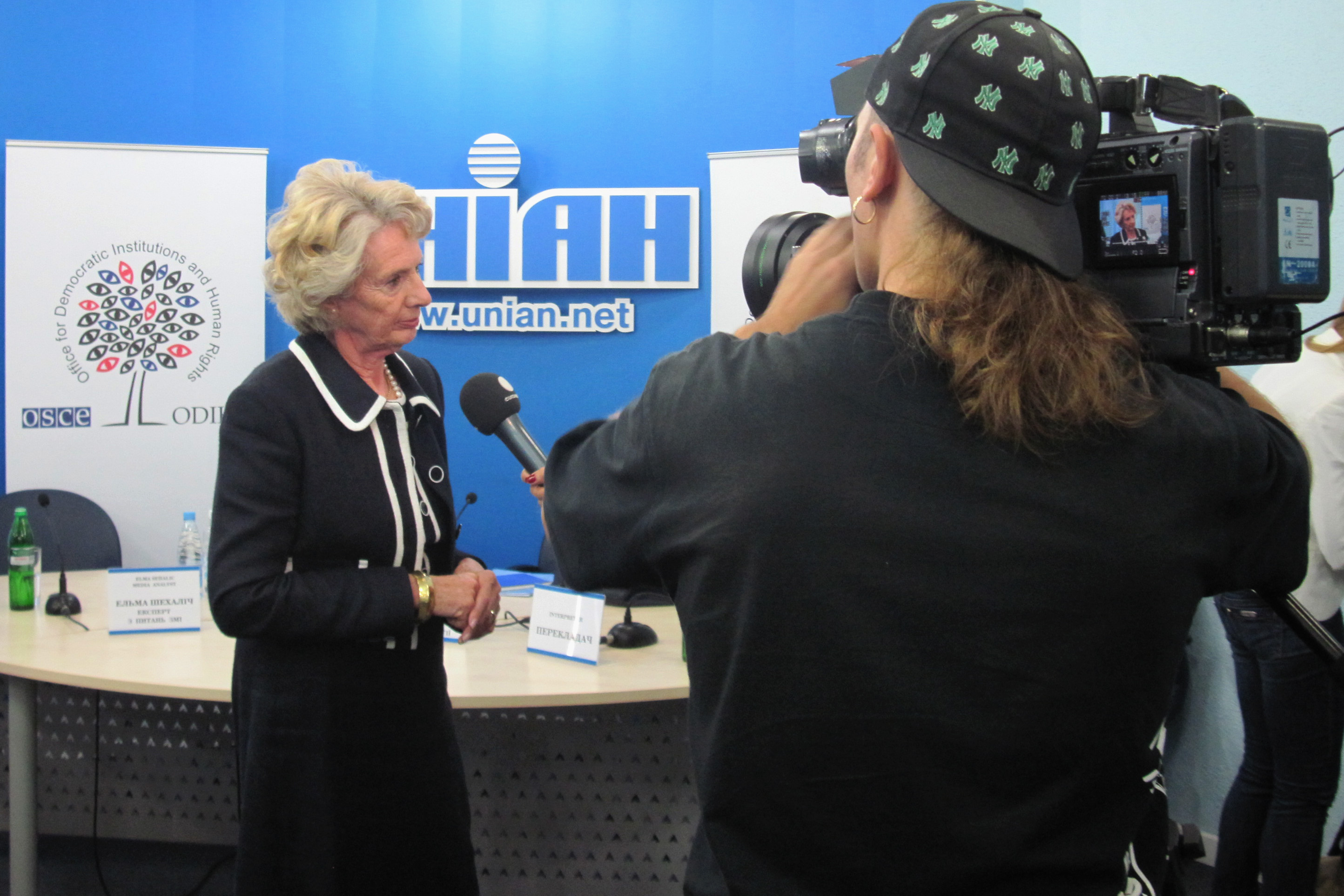 Dame Audrey Glover, Head of the OSCE/ODIHR Election Observation Mission to the 28 October 2012 parliamentary elections in Ukraine, speaks to a journalist at the Mission’s opening press conference, Kyiv, 12 September 2012.