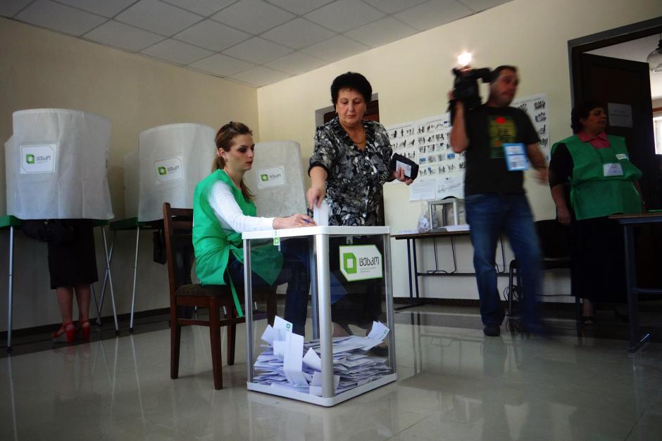 A voter casts her ballot in Gori during the Georgian parliamentary elections, 1 October 2012.