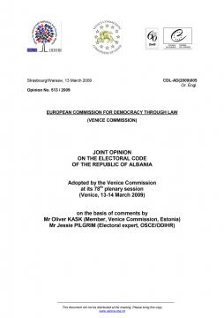 This joint opinion comments on the most recent version of the Electoral Code of the Republic of Albania. Earlier opinions of the OSCE/ODIHR and the Council of Europe’s European Commission for Democracy through Law (Venice Commission), as well as numerous election reports from previous OSCE/ODIHR and Council of Europe observation missions in Albania, provide excellent background for understanding the historical development of the Code. The most recent version of the Electoral