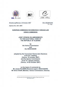 Joint Opinion on Amendments to the Electoral Code of the Republic of Albania