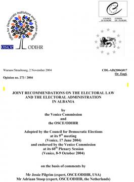 This joint assessment of the Electoral Code of the Republic of Albania is provided by the Organization for Security and Co-operation in Europe’s Office for Democratic Institutions and Human Rights (“OSCE/ODIHR”) and the Council of Europe’s European Commission for Democracy Through Law (“Venice Commission”), on the basis of comments by two experts of the OSCE/ODIHR, Mr. Jessie Pilgrim (USA) and Mr. Adriaan Stoop (Netherlands).