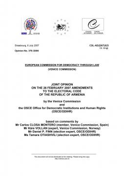 Joint Opinion on the 26 February 2007 Amendements to the Electoral Code of the Republic of Armenia