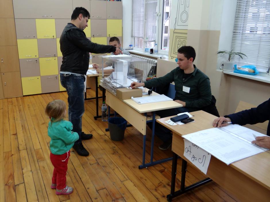 A voter in Sofia casting his ballot during Bulgaria's early parliamentary elections, 5 October 2014.