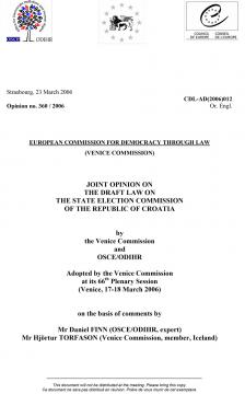 Joint Opinion on the Draft Law on the State Election Commission of the Republic of Croatia