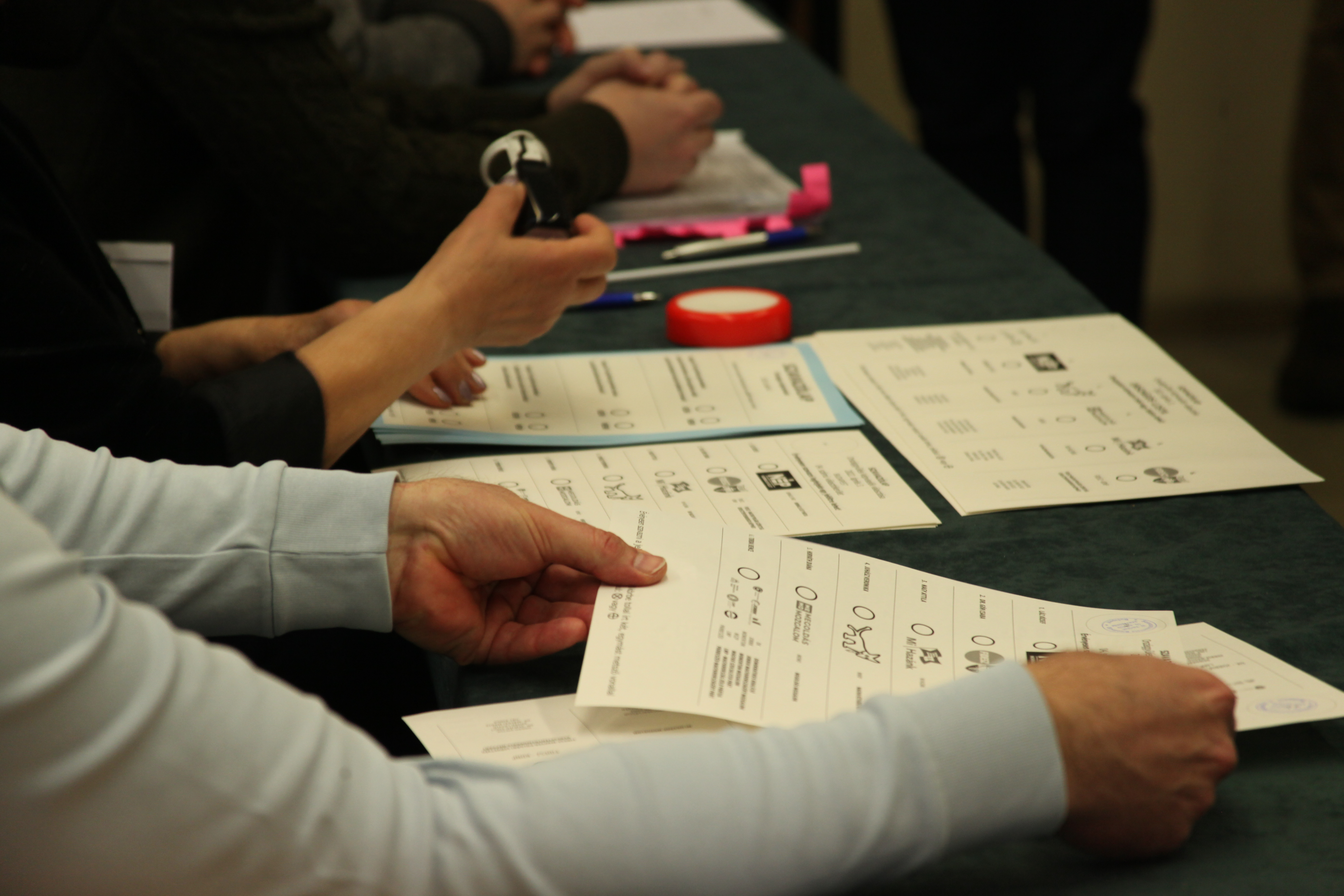 Polling station officials prepare ballots for voting in Hungary's parliamentary elections. Budapest, 3 April 2022.