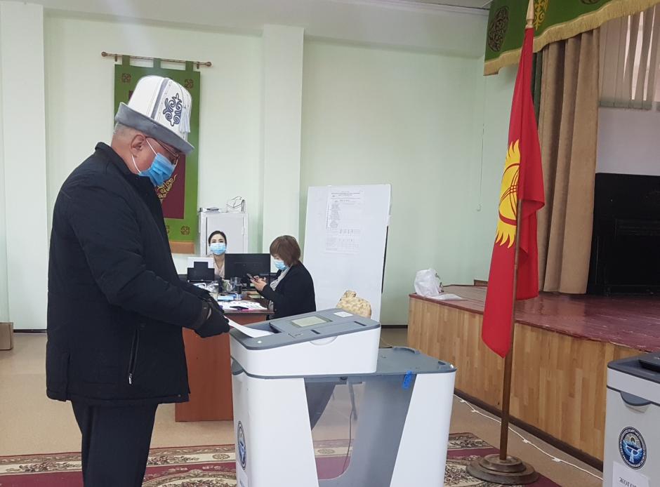 A voter casts his ballot during Kyrgyzstan’s parliamentary elections. Bishkek, 4 October 2020.