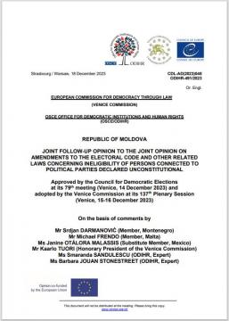 This Joint Follow-up Opinion was prepared by the European Commission for Democracy Through Law (Venice Commission) and the OSCE Office for Democratic Institutions and Human Rights (ODIHR) following a request from the Speaker of the Parliament of Moldova.